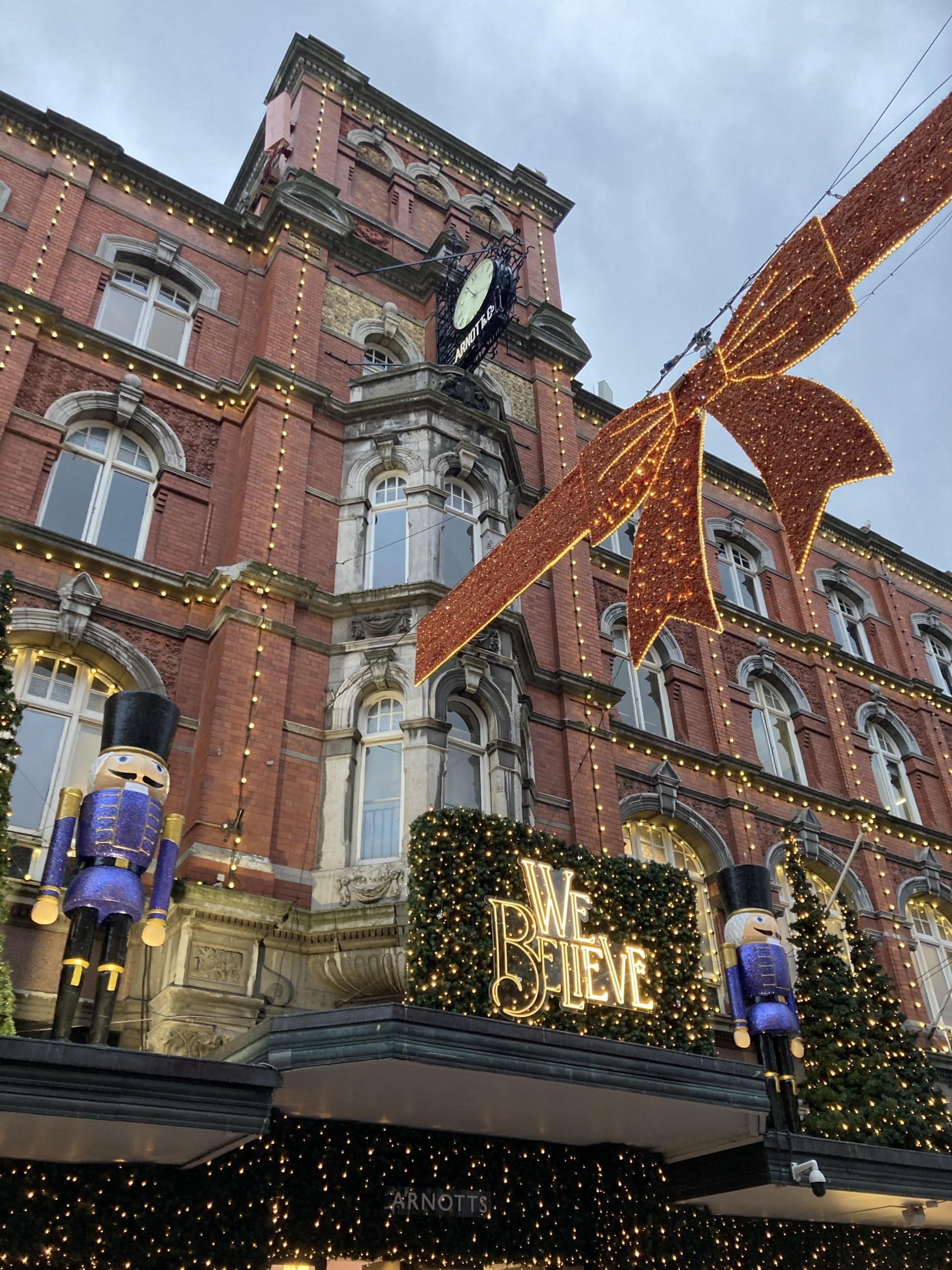 Da quando hai visto Miracolo nella 34esima strada o Home Alone 2, hai sempre sognato di visitare un negozio di giocattoli completamente decorato con luci natalizie, alberi e Babbo Natale? Non necessariamente un negozio di giocattoli, ma sicuramente un grande negozio, Arnotts in Henry Street offre la perfetta vetrina natalizia che si possa desiderare: Uno schiaccianoci gigante davanti a migliaia di luci, ghirlande e un enorme fiocco, il tutto sormontato da una scritta “Noi crediamo”. Dopo aver visto questa bellissima decorazione, crediamo anche noi che il nostro umore natalizio si sia risollevato.